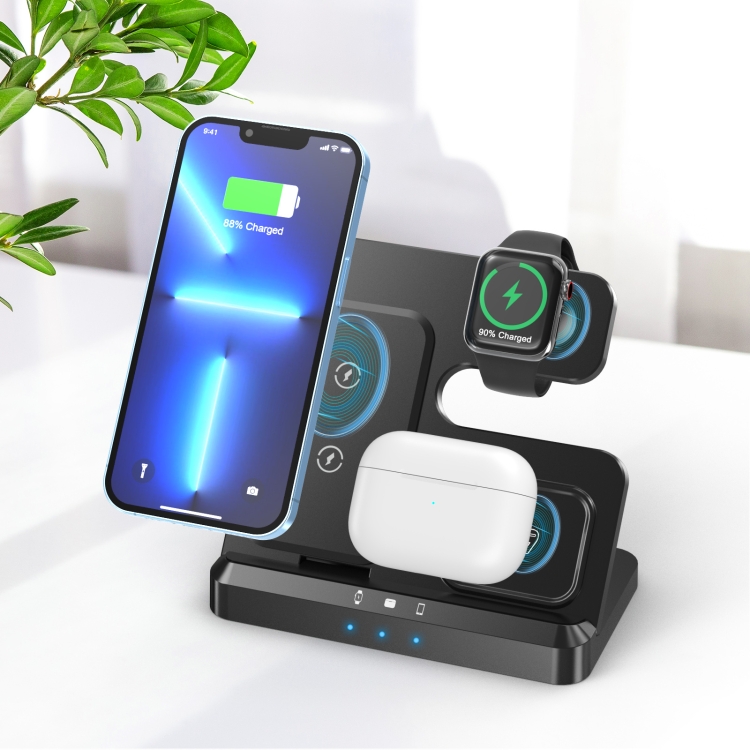 - Carga Inalámbrica 3 en 1: Permite cargar hasta tres dispositivos simultáneamente con un solo cable.