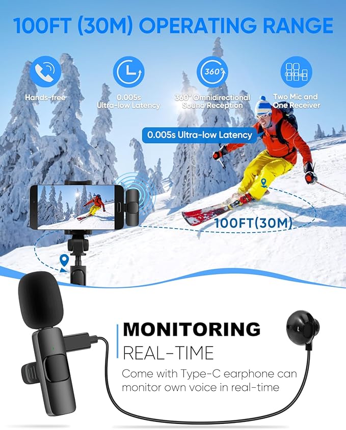 - 😊 【Monitoreo en tiempo real】 Este es un micrófono inalámbrico totalmente actualizado con función de monitoreo en tiempo real añadida. Viene con un auricular con cable de interfaz tipo C, por lo que es fácil para que puedas monitorear tu voz en tiempo real cuando estás transmitiendo en vivo, grabando o enseñando en línea, etc., reduciendo eficazmente los errores.
